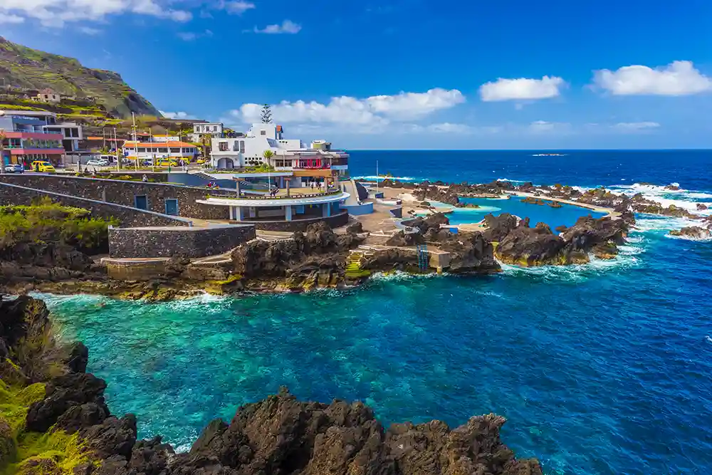 Porto Moniz ist berühmt für seine natürlichen vulkanischen Pools und ein fantastisches Ziel für einen Tagesausflug. Die Fahrt nach Porto Moniz ist mit kurvenreichen Straßen und einer atemberaubenden Küstenlandschaft gespickt, was sie zu einem perfekten Abenteuer für diejenigen macht, die einen Motorroller auf Madeira mieten. Nach einem erfrischenden Bad können Sie in einem der örtlichen Restaurants mit Blick auf die Pools eine Mahlzeit genießen.