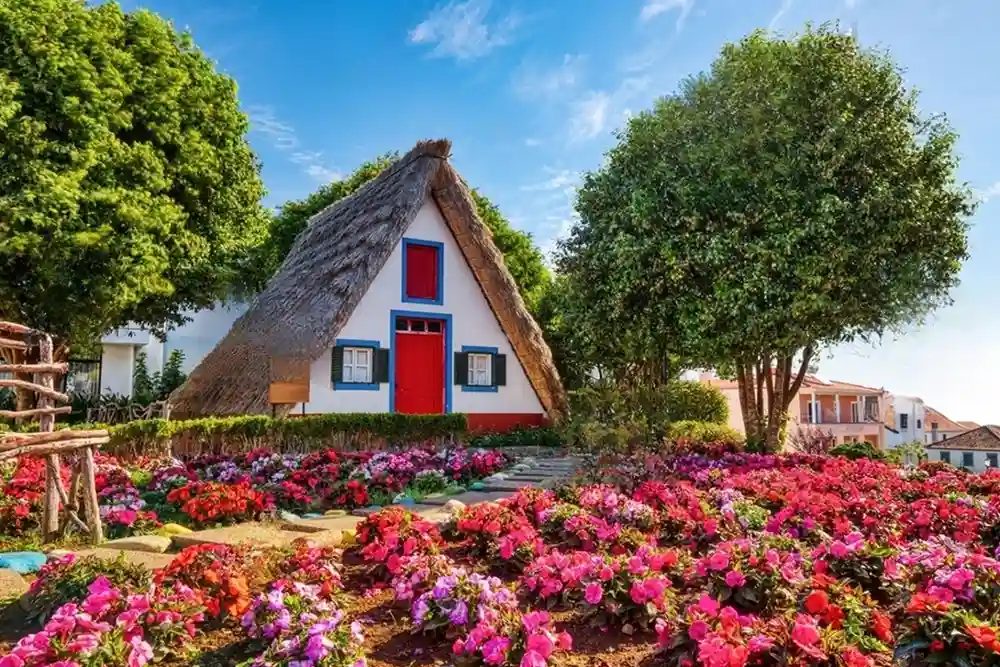 Erkunden Sie die traditionellen madeirensischen Häuser in Santana, die für ihre charakteristische dreieckige Form und ihre Strohdächer bekannt sind. Die malerische Fahrt durch die üppig grünen Landschaften im Landesinneren Madeiras ist ein Highlight für sich. Bei einer Fahrt mit dem Roller durch diese Gegend können Sie den ländlichen Charme und die natürliche Schönheit der Insel in vollen Zügen genießen.